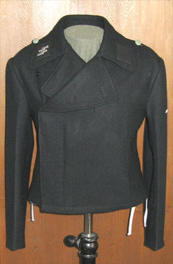 This is the jacket that replaced the previously used army style Panzer/ski jacket in SS armored crews. The pattern is almost identical to that of a leather jacket that was popular with NSKK motorcyclists prior to the war. The main differences between the army and SS Panzer jackets are a straight cut closure in front, a closer fit in the chest, rounded collar and lapel corners, one piece back without central seam, a much shorter body, inside closure tabs instead of loops.