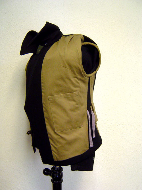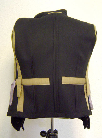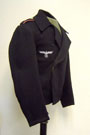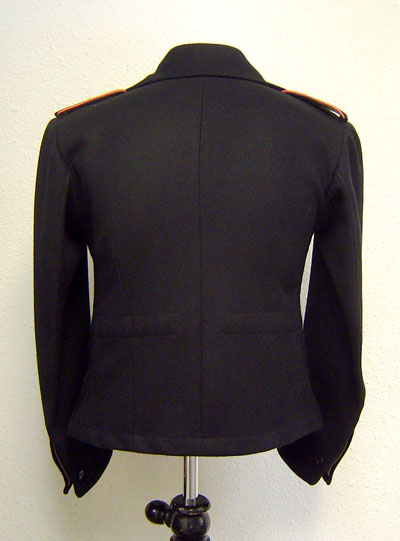 The Lost Battalions Army Panzerjacke has all the details of the original. It is exactly reproduced in black wool from the original pattern and has the correctly angled front closure found on all originals. The collar, as well as the death's head collar tabs of the Panzerwaffe, are piped in your choice of rose pink or golden yellow. The jacket is lined in brown twill as were the originals. Two belt suspension tabs are provided to carry the support hooks for the waist belt. This is the premier reproduction Panzer jacket on the market today. Since it's made from the original pattern, it also fits exactly like the original, with a narrow back and small armholes that encourage the wearer to assume the correct military posture. Don't confuse this uniform with the horrible baggy Chinese made sad sacks offered elsewhere. We've actually seen our jackets on militaria show tables being offered as WWII originals. With keyhole buttonholes made on period wartime original Reece buttonhole machines, as used by the Germans, and the characteristic three stitches per centimeter, even the sewing details of this Panzer jacket will pass the closest inspection.