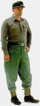 These trousers replaced the M36 and M40 straight-leg trousers and were often referred to as "Keilhosen" (literally stretch-pants) because the design was copied from civilian ski trousers, which were often made of stretch material. They were often called mountain-style trousers for the same reason. They were as widely used as the M36 and M40 service trousers after 1942, and were the first trousers meant to be adaptable to shirt-sleeve uniform for hot weather operations.
