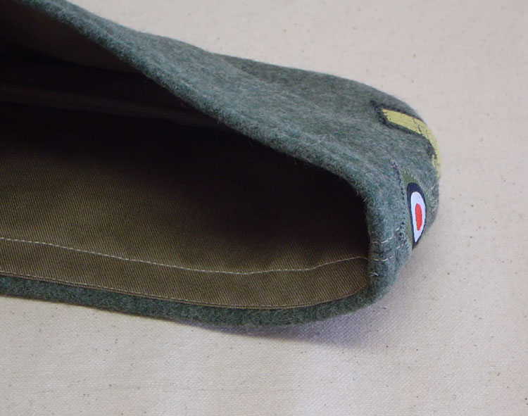(Below) The lining in the cap is exact, but with black cotton twill.