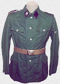 SS M41 HBT Field Blouse (Feldbluse) - OUT OF STOCKPlease read here about the proper fit of the jacket. he SS-VT, later known as the Waffen-SS, was the first German military formation to wear summer appropriate field uniforms, starting as early as 1934. In 1941, the SS modified the summer blouse to more closely resemble the Army's 1940 reed green HBT field blouse. However, it kept the traditional five button front, unlike the Army's M40 HBT jacket and the Army M43 HBT jacket, which had six buttons. There was also a hybrid SS version without throat button, as on the earlier SS HBT's, but with patch pockets on the skirt. Click here for the details of the Lost Battalions reproduction of this uniform. This item is proudly made in Folsom, California Jacket $235T Jacket and Trousers $350 Shoulder straps are $15 with Purchase of jacket. Add 2 Belthooks for $6 Shipping in Continental US: $10 |